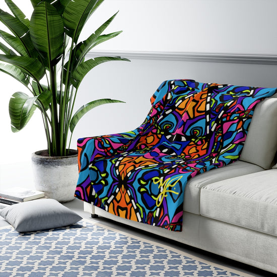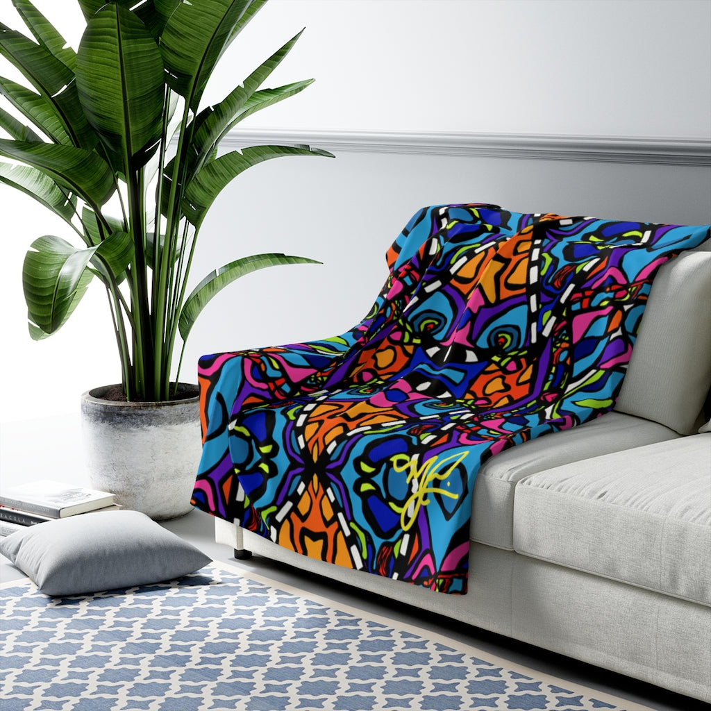 This cozy fleece blanket is the perfect mix of Art and Warmth! Each blanket has been made with the art collector and homebody in mind. Whether traveling on the road to spend time with family, binge watching on the couch, or hanging on the wall as collectible, it is perfect size for anything.