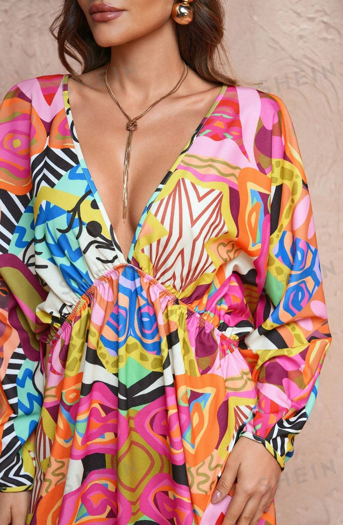 SHEIN X Abeille Creations All-Over Printed Lantern Sleeve Wide Leg Jumpsuit With Detachable Belt $0.00 Sold Out