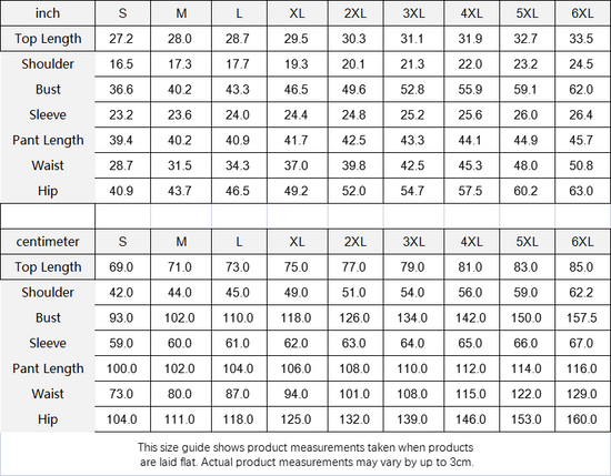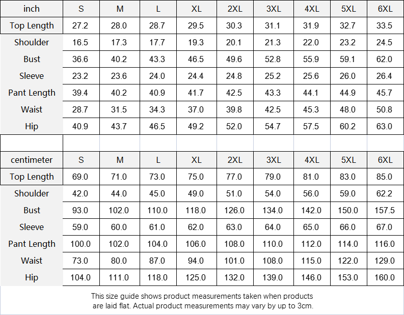 | centimeter | S | M | L | XL | 2XL | 3XL | 4XL | 5XL | 6XL |