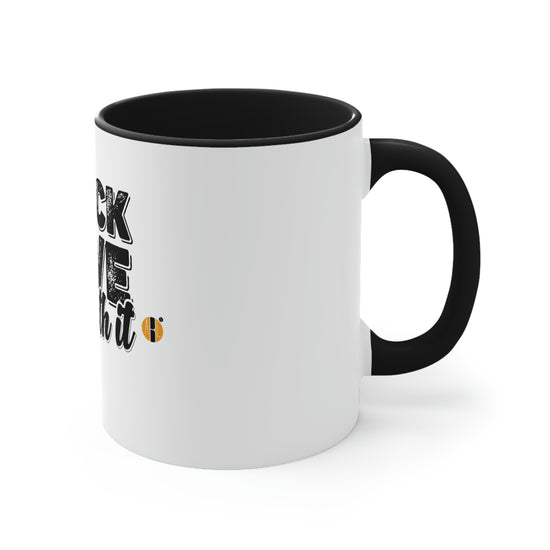 Add some color to your routine with this two-tone, custom accent coffee mug. This 11oz mug features an accented C-Handle that is comfortable to use, as well as an accented interior to add more contrast and character. With your design on this mug, you get an instant winner of a product.