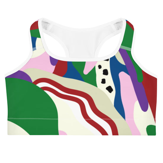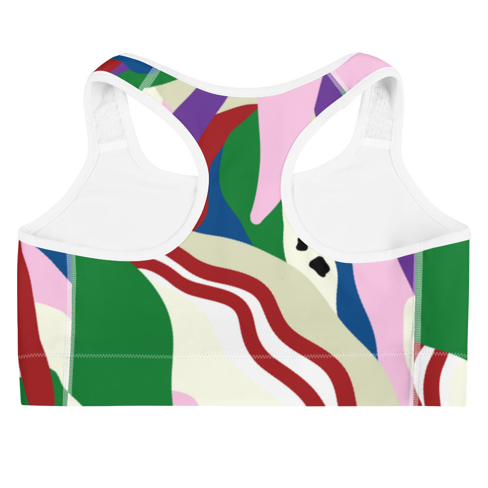 This gorgeous sports bra is made from moisture-wicking material that stays dry during low and medium intensity workouts. The bra has support material in the shoulder straps, double layer front, and a wide elastic band to ensure constant support.
