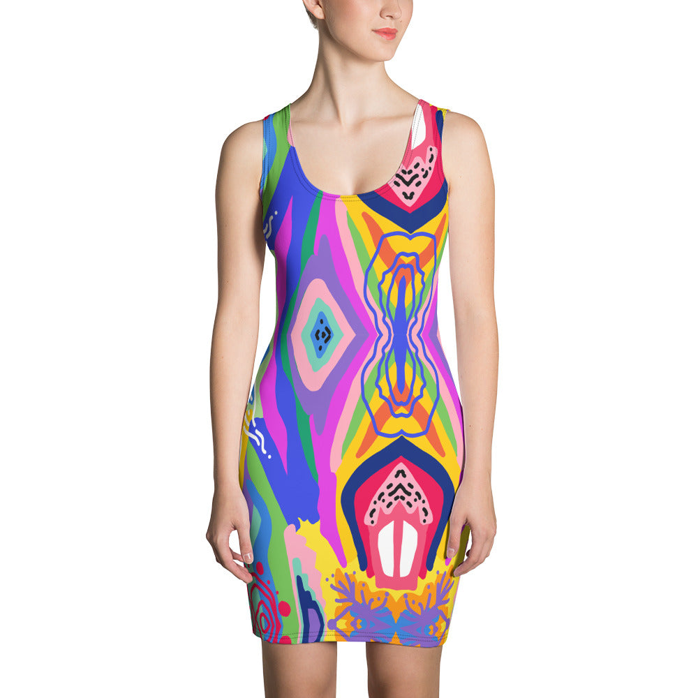 Make a statement and look fabulous in this all-over printed, fitted dress.