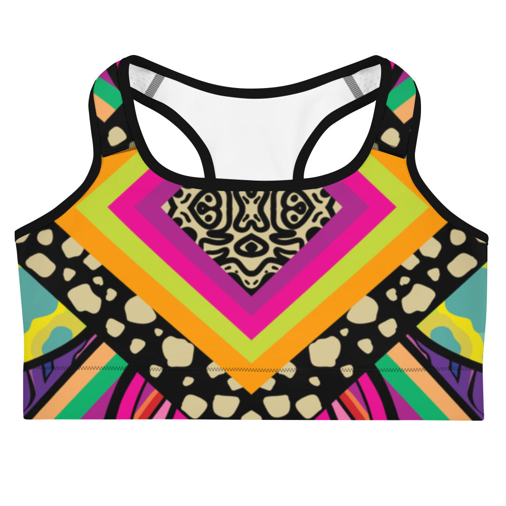 This gorgeous sports bra is made from moisture-wicking material that stays dry during low and medium intensity workouts. The bra has support material in the shoulder straps, double layer front, and a wide elastic band to ensure constant support.